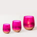 'Copper and Smoke' is our collection of votives made from hand-blown glass and dipped in a stunning copper paint for a pop of metallic. Available in three sizes and impactful colours; fuchsia, turquoise and blue.